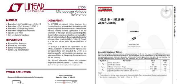 Las principales diferencias entre todos estos metros es lo que generan su tensión de referencia y su pantalla. En mi gráfico para este paso hice capturas de pantalla de hojas de datos para una referencia de voltaje de precisión y un diodo Zener. Porque estos medidores utilizan uno u otro como su referencia. Los metros realmente baratos utilizan el diodo Zener, y los mejores tienen el dispositivo de referencia de voltaje de precisión. Por supuesto desea obtener una referencia de precisión y no un diodo Zener.