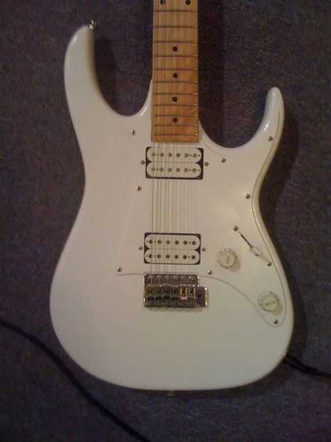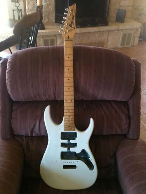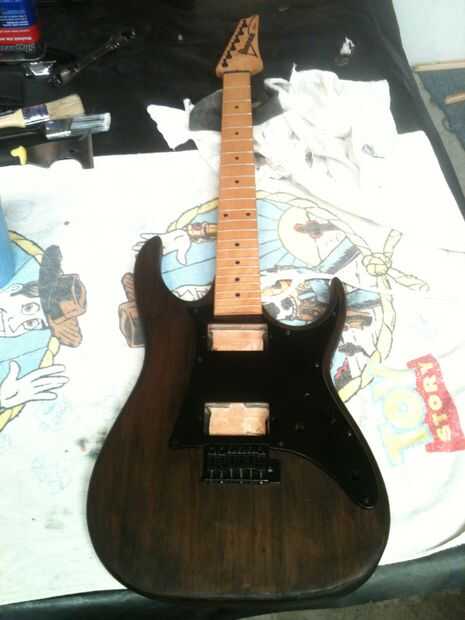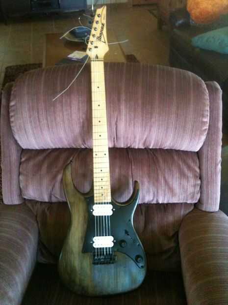 cuando empecé a tocar la guitarra, toqué un barato epiphone Les Paul p90. Más tarde compré una Ibanez Gio, que ha sido mi guitarra ir a ya. Un día, me cansé del esquema original de pintura roja de mi Epiphone, así que decidí darle más carácter con un