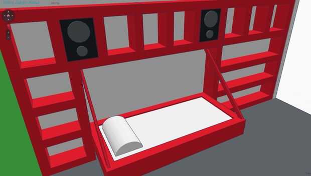 Para ser honesto, estoy bastante contento con mi habitación ahora mismo. Pero todo tiene margen de mejora, y hay una impresora 3D en juego! ¿En serio, quién no quisiera una impresora 3D? Pero de todos modos, de nuevo en el tema. Como se puede ver, me encanta mi espacio de almacenamiento. Ser un ratón de biblioteca realmente no ayuda! Ya tengo una estantería entera rebosante de libros, y no podía olvidarse de todos mis trofeos, baratijas, juguetes, juegos, memorias, tarea de viaje... He diseñado mi habitación para que la cama puede doblar para arriba en los estantes, creando más espacio para relajarse después de acabar mi tarea. En la parte inferior de la cama, hay un impresionante televisor de pantalla plana. No necesito una TV que puedo ver en la cama, algo sería leer un libro. Hablando de libros, hay algunas luces de lectura útil por encima de la cama, también. Entonces, tenemos los altavoces de sonido envolvente, perfecta para establecer el estado de ánimo durante una película tensa. También es una de esas chimeneas electrónicos frescos que me encanta para maratones de cine de invierno. En el otro lado de la habitación, hay mi escritorio. Azotó una silla elástica funky para darle vida a la habitación. El escritorio tiene pequeñas estanterías que probablemente utilizaría para zapatos y la tarea. En la esquina, hay un tubo rojo - este es mi sistema de transporte neumático. Aquí, usted puede enviar todo lo que cabe en él a lo largo de la casa a quien quieras, cuando quieras! Bajo el escritorio es el espacio de almacenamiento para moda y cómodos viendo película silla cosas. Entonces, por supuesto, tenemos el armario viejo aburrido. De hecho, casi me olvido sobre ponerlo en! Mucho espacio desperdiciado. Pero necesitamos un lugar para guardar nuestra ropa, por supuesto. Y ahí lo tienen! Mi funky, moderno, amplio y bastante impresionante mejoran de habitación! Ideal para ratones de biblioteca, los jugadores, traviesas y freaks ordenadas por igual!