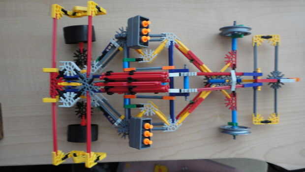 K "nex necesarios para este proyecto.4 ruedas medianas2 engranajes pequeños1 engranaje medioengranaje grande 11 rueda de negro (para el volante)4 headtops rojo (para luces)7 conectores blanco8 conectores amarillos10 conectores verdes6 conectores rojo