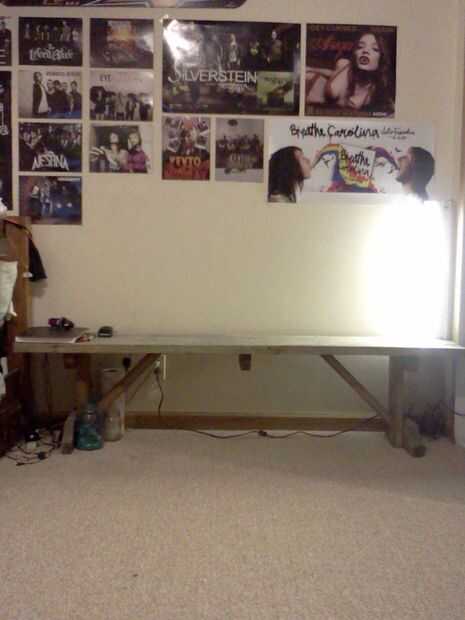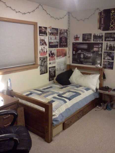 Este es mi 1 de mi banda página las paredes llenas de carteles de diferentes bandas como y o el amor. no tengo muchas cosas así que sacó un banco del patio que estaba inactivo por casi una década. hace de soporte de la gran noche y estante de la ropa sucia antes que tirarlos en mi cesto. en este espacio podría utilizar un futón o algo más pequeño que sería lo ideal pero dependiendo de las circunstancias de otras áreas de mi habitación en que es pregunta porque este espacio es un caso que tengo el espacio de tiempo y dinero.