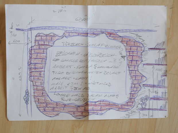 luego hacer un pequeño bosquejo sobre cómo me gustaría tener la mirada de lo hecho y rayar la justa medida en la pared.