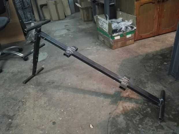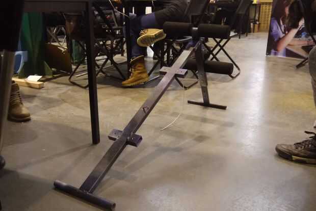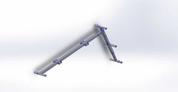 La base es ensamblada por soldadura. También, hay piezas desmontables que permiten doblar el Banco y hacerla más compacta, lo que puede verse en el modelo que se adjunta a este paso.