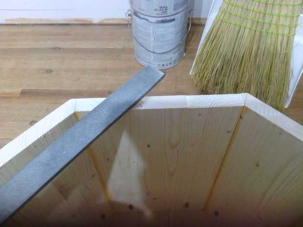 Después de un poco de pensamiento, he decidido que la parte superior mirado un poco llana así que corte un ángulo de 25 categorías alrededor del borde para decoración. Más tarde me di cuenta de que los bordes redondeados también sentían mejores sobre piel desnuda! También, no me gusta la tapa de asiento no tener que inclinarse contra la apertura.