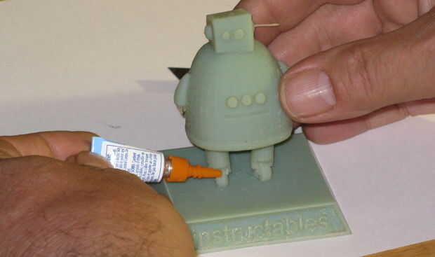 Después limpié Robby he pegado el robot a sus pies en la base y mantiene en su lugar hasta que el pegamento.