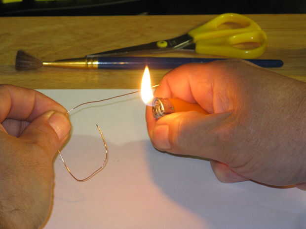 No creo que él podía oír bien con una sola antena así que empecé tomando un alambre del mismo diámetro que las antenas uno todavía tenía y quemar la insolación con mi encendedor.