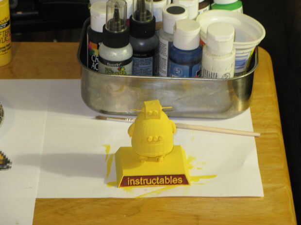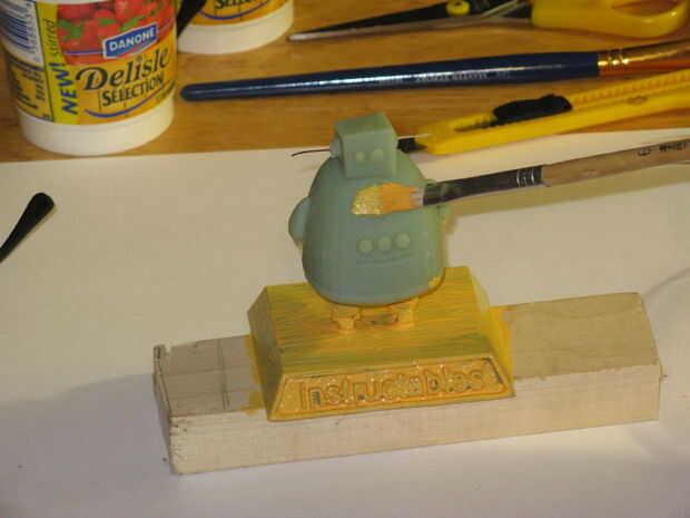 Empecé dándole una capa de pintura amarilla a Robby y deje que se seque.