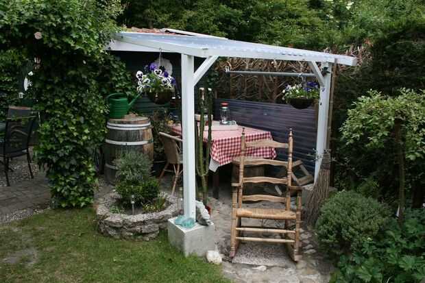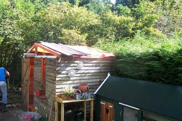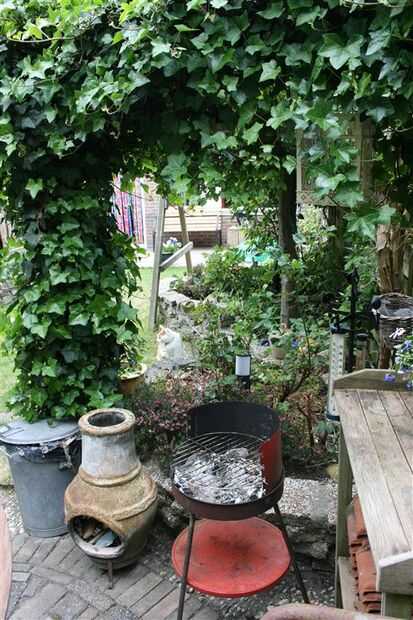 Bueno, desde entonces mucho ha happenend, en mi familia (tengo dos niños ahora) y en mi jardín. Casi cualquier cosa fue construido con materiales reciclados, los bordes, mi pequeño cubierto, el porche. Fundado y dado los materiales y compraron cosas en fleamarkets y tal. Estoy especialmente orgulloso de mi caseta, construcción de madera de la cerca y que tiene un techo con muy antiguo, de segunda mano tejas