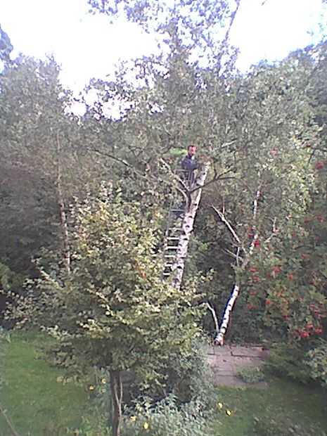Compramos nuestra casa en el año 2001 y cuando nos mudamos descubierto que alguien había reemplazado a un bosque a nuestro patio trasero. Tuvimos que cortar 9 árboles en un jardín de 5m por 12m, el árbol más grande que un abedul de alrededor de 15m