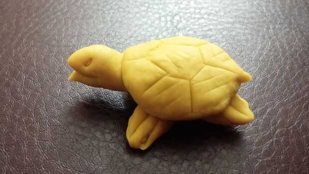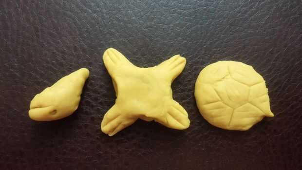 Por tortuga tome una pequeña cantidad de arcilla. Hacer una forma redonda y luego presione en su palma para hacer un platillo. Presione en el centro para dar la curva. Hacer un pequeño punto en el lado para mostrar como la parte trasera de tortuga. Luego tomar aprox. otra misma cantidad de arcilla y del rodillo que forma redonda entonces pulsa a una forma de platillo. Entonces trate de convertir esa forma de platillo en 'X'. Estos cuatro lados serán las patas de la tortuga. Tome otro poco de barro para hacer la boca de la tortuga. Forma según la imagen. Ahora se unen todos estos. También hacer alguna talla en concha para darle aspecto más particular. Hornear en el horno y el color según usted. Esta había coloreado en azul como lo fue la elección de mi hijo. (He intentado tomar fotos en play doh).