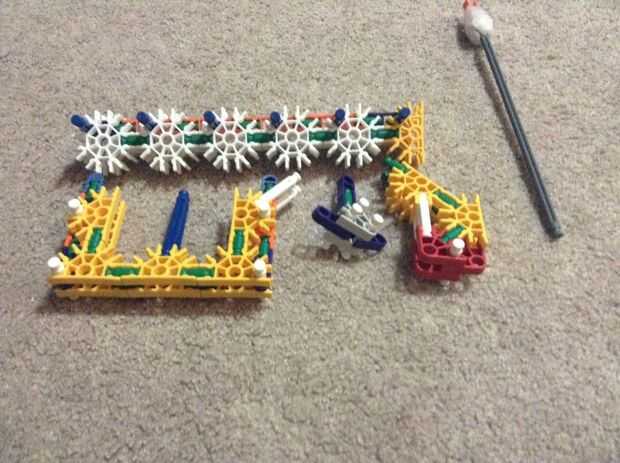 HolaEstas son las instrucciones para la pistola / iPod caso que publiqué hace un tiempo.Esta arma utiliza un medio para algo gran cantidad de piezas, dependiendo de su colección de K'nex. Utiliza algunas varillas rotas, otros trozos que ves en las in