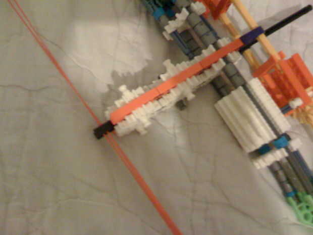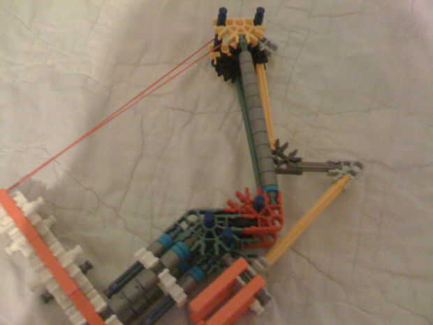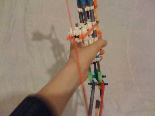 Este arco utiliza un barril en pistolas/armas blancas para sostener el arco. El mango es justo debajo de él.
