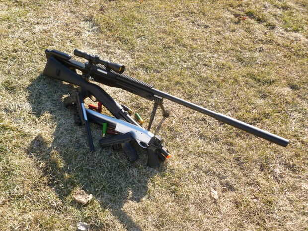 Bien que he obtenido en airsoft últimamente y consiguió un mk96 utg de airsoft. Su una muy buena pistola, dispara 540 fps y pesa más de 10 libras. La pintura en la acción no es el mejor pero funciona, también es delantero un poco pesado. Algún tiempo necesito publicar la exactitud cuando tengo un día bueno, nonwindy para disparar. Planeo actualizar esta pistola con el tiempo, pero actualmente tiene un alcance de 40 3-9 x, amplificador de sonido personalizado, 6,01 mm barril, sears actualizados y el kit de actualización básico instalado. Son las futuras actualizaciones que planeo hacer: Ejército cero gatillo, laylax pistón, unidad de hopup de pdi y un barril para el hopup. También pienso en que quizás la kjw 10/22.