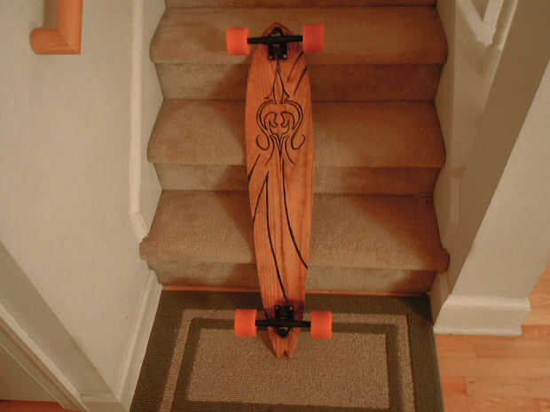 Fui con roble rojo debido a la mirada (quería ver un grano de madera prominente y el color de la madera), la falta de flexión como flex juntas hacen me muy incomoda y durabilidad. En cuanto al patrón en la parte posterior que pretendo, en un punto, pintar el interior de la Fleur De Lis de oro ya que soy un fan de los Santos (de ahí la inspiración de mi diseño).