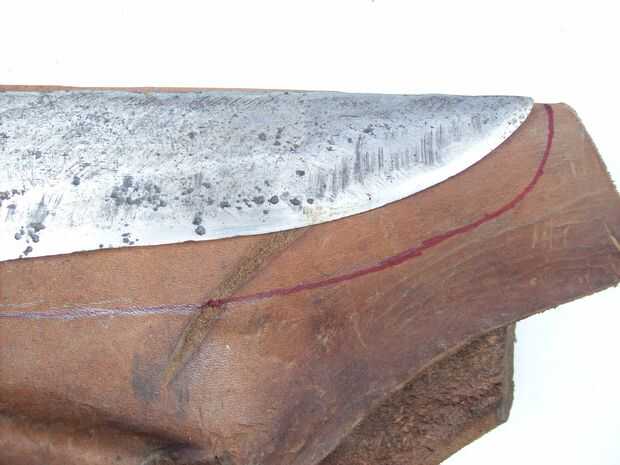 esto es un cuchillo machete/Bowie hice después de ver algunos que tubo videos caseros machetes la manija se hace de una pieza de 2 x 4 el acero es de Home Depot para hacerlo, en primer lugar, trazado el diseño sobre el acero entonces, tomé mi sierra
