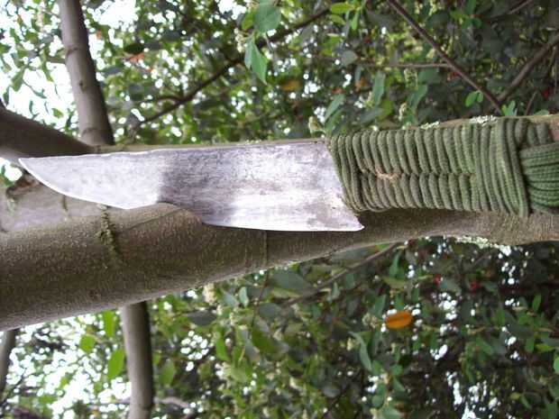 hoy vamos a hacer un muñeco de machete de madera colgante que se puede practicar en el. Es bastante simple y toma diez minutos para hacer.Paso 1: materiales Necesita:bloque de longitud 4-5 pies de maderaTaladroParacordÁrbolPaso 2: perforación Haga do
