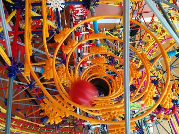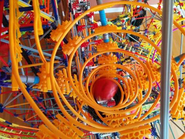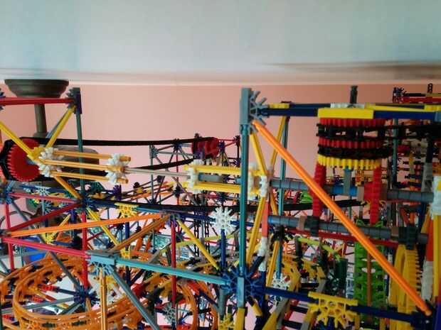 Aquí es una máquina de la bola de k'nex que fue construida por un niño de 7 años!