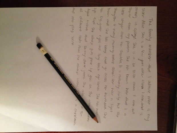 El primer día de la actividad, los estudiantes completarán la porción de la escritura de la lección.  Comenzará escribiendo un párrafo descriptivo sobre un miembro de la familia que admiran.  Debe incluir una descripción de lo que el miembro de la familia parece, junto con lo que les gusta hacer.  Tienen que ser muy explícita con estas descripciones.