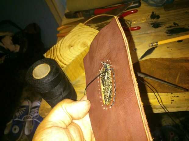 -pegamento de la piel de serpiente y de la piel frontal con el frontal de cuero.