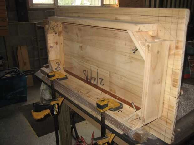 El marco fue hecho de los carriles de las tapas de madera de palet. Yo no cambió estos mucho sólo corte a longitud y arena como lo fueron en la profundidad adecuada que quería. He añadido extra estrechos carriles a estos así pude tornillo de la parte superior al bastidor. Luego agregué las abrazaderas de las esquinas para tener las piernas...