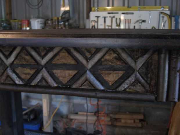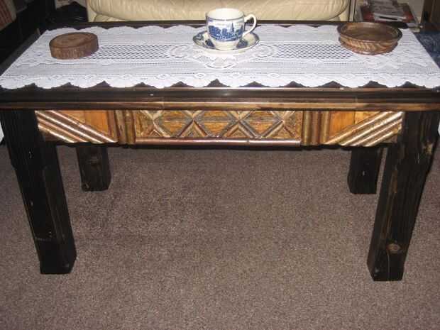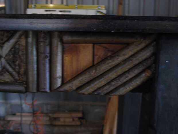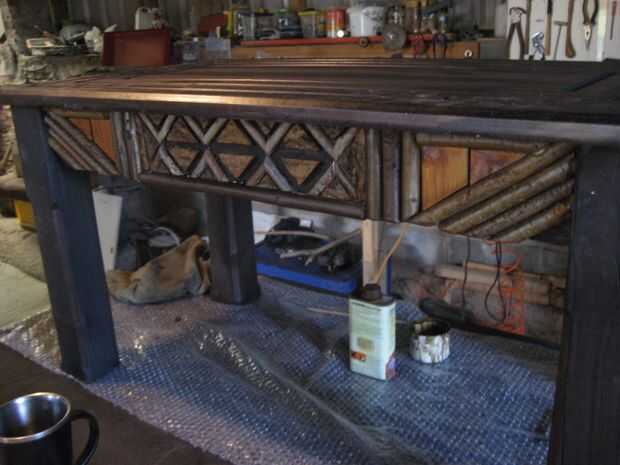 He utilizado ramas, algunos corte chapa casera de cortar en la tabla VI y corteza. Luego utiliza una pistola de pegamento caliente para fijar en su lugar el fijados con clavos. El acabado es barniz seco claro rápido, cuatro capas. Me gustó mucho esta versión y fue un proyecto de upcycle buena...