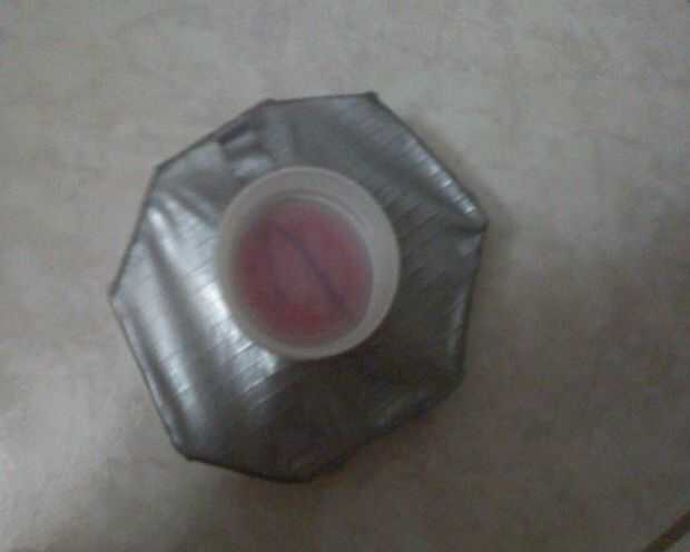 Llevan tapa de soda y colóquelo en el centro mina y cinta adhesiva.
