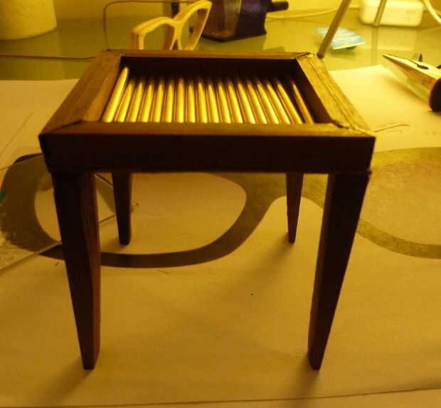 vio la habitación perfecta en una revista y quería re creado para mis primos y su casa de muñecas! hecho totalmente de madera y poco metales tubos para decoración. Disfrutamos mucho! tenía un montón de ayuda de los pequeños fáciles de preparar basta con madera y pegamento!