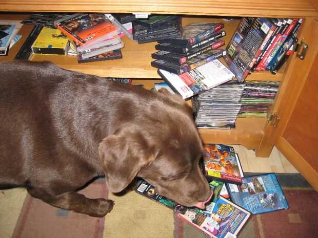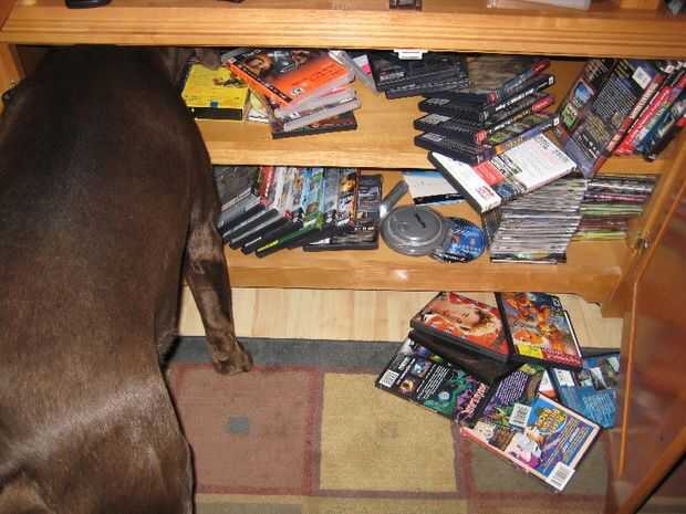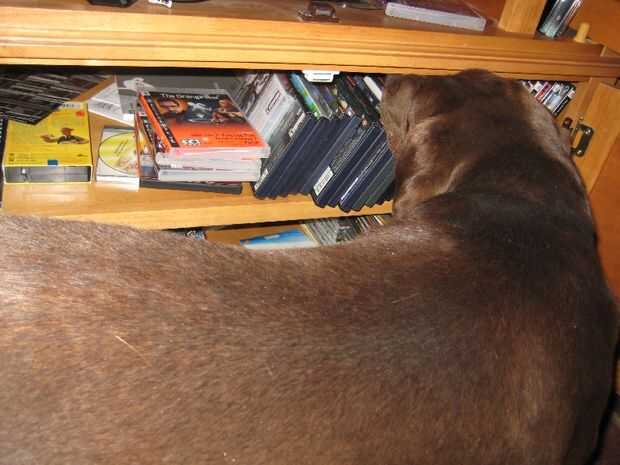Mi medio gabinete tiene un error de diseño menores, no guarda muy bien mi DVD y juegos de video. Ahora parte de la cuestión es que mi gato le gusta escondió en la parte posterior de la bandeja superior, para que luego el perro huele el gato y piensa que el gato siempre debe ser "actualmente situada justo detrás de estas cajas de plástico".