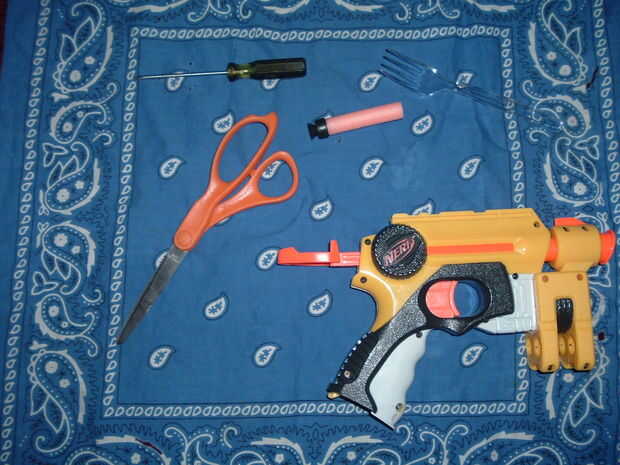este mod permite que el cañón de su maverick nerf a salir más.Paso 1: desmontaje Tomar los tornillos en la diapositiva la primera. luego tire de ella. Luego sacar todos los tornillos y tire su Maverick aparte. Debería ver esto.Paso 2: Eliminación de