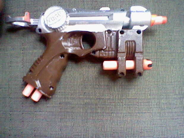 pistola Nerf A es, simplemente, una pistola de juguete de plástico que dispara espuma dardos. Sin embargo, el arma no es tan fuerte lo suficiente como nos gustaría, y fuera de caja, realiza en ninguna parte cerca de su capacidad. Hasbro ha instalado