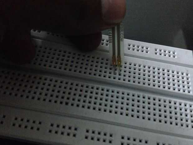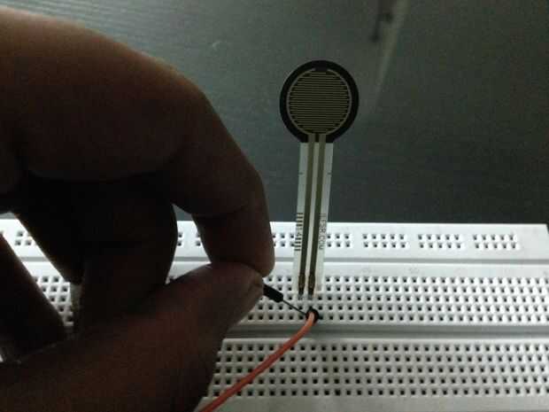 Conecte el sensor de presión a la placa con cuidado. Sus terminales son muy filosas para cuidar de.