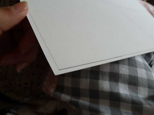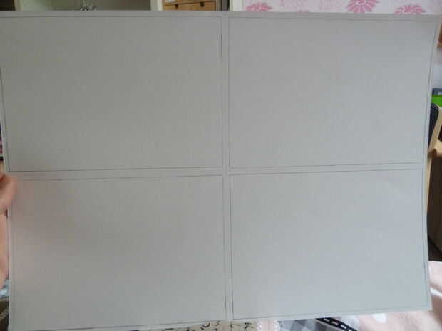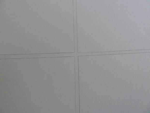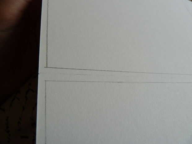 Ya que no podía elegir qué técnica quería usar, divide el cuadro en cuatro partes, cuatro de ellos a trabajar diferentemente. No quería que las partes directamente al lado de uno así que primero divide el papel en cuatro y luego dibujé un rectángulo en el centro de cada una de las cuatro partes.