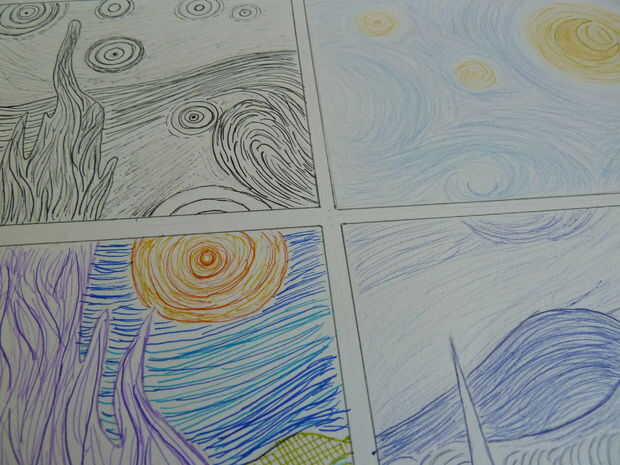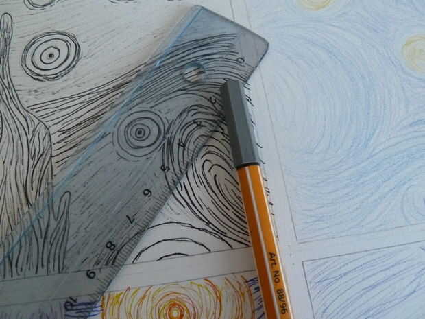 Van Gogh tomó menos de una hora---aproximadamente 45 minutos---pintura noche estrellada. Al parecer pensó que fue un fracaso.Me encanta la noche estrellada. Mi esposo piensa su debido a que noche estrellada de la imagen con la TARDIS volando a través