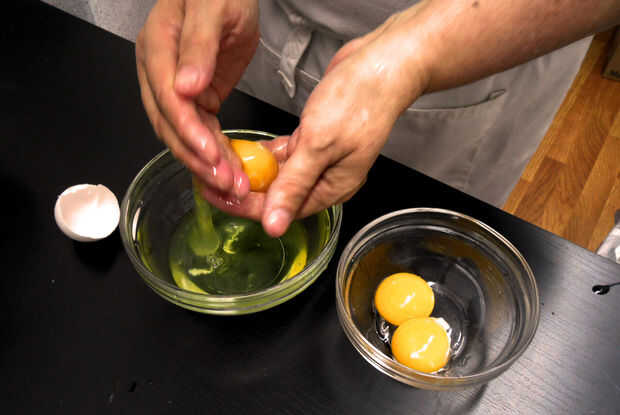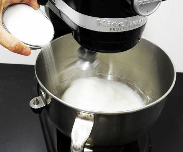 Sugerencias: Cualquier poco de yema de huevo se sabotear la mezcla de clara de huevo y no dejarlo crecer. Asegúrese de usar solamente las claras de huevo.