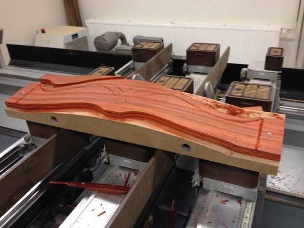 Primero mi modelo de Cad de hierro utilizado y había programado de Alfacam. Pasé mucho tiempo en ella! Fue duro porque aprendo sólo 2D pero no 3D. Tuve un poco de ayuda de un profesor y un i´m agradecido por eso. Había atornillado al lado en el molde y lo puso en la máquina CNC y hace el resto. Fue estelarrrrrr. Sólo un error con la talla. Se me olvidaba una línea a eliminar así que él fue un poco diieper... Tuve un arena suave pero el resto es perfecto! Después de lijar y hacer suave otra vez, hice la clásica conexión clavija y del agujero y se ha hecho por ahora! Tengo un video pero no se puede mostrar...