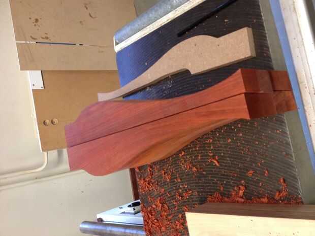 Hice un molde para trabajar con la madera en el tamaño adecuado y un montón de horas. En las fotos puedes ver como va. Tuve que voltear la máquina unos cuantos debido a la veta de la madera. Se puede ver en la última foto lo que quiero decir.