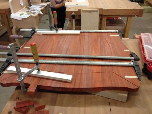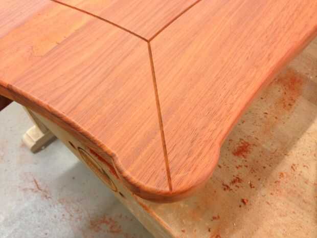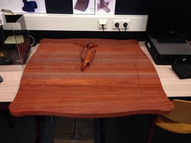 Bajé a la máquina CNC y sí fija, tipo de. La máquina dio errores debido a unas líneas que no estaban visibles. Cuando él trabajó también no trabajó... {Foto 3} Tuve que arreglar eso a y no tengo mucho tiempo. Fue así que lo siento, pero yo le di las gracias y le dije no te preocupes lo arreglo ahora. Por lo que vi arriba en 4 piezas, por lo que el agujero se ha ido, hecho un tablón de madera del mismo tamaño y pegados en ella. Lo único que tenía que hacer era el resto a mano. No ves una cosa cuando estoy hecho! {imagen 5}. Un lado redondeado está liberado y hecho. Costó un día de trabajo!