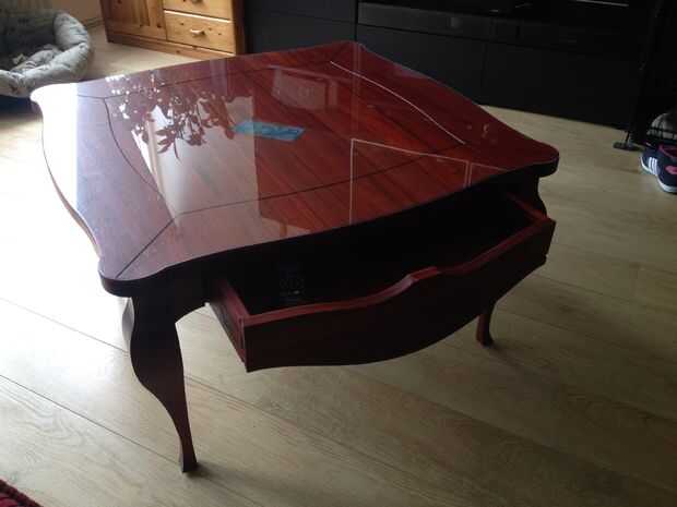 Al día siguiente Armando el rompecabezas. He volteado la mesa, atornillar el marco y ahora el cajón. todo ha ido bien, era irritante para putt en el medio. Se hizo! Lo único es que puedes ver las diapositivas del cajón en la parte delantera: (desventaja pero no está mal! Este sonido no era fácil, pero, de día unas cosas salió mal y cuestan más tiempo...