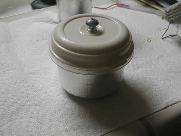 Para descargar, de la manera algunos "pinzas" de un viejo tubo de bolígrafo y un alambre de cobre. Se puede ver parte de la mina en la esquina superior derecha de la última foto. En primer lugar, póngase en contacto con el revestimiento exterior. Luego, con el otro extremo de las tenazas, acercarse a la terminal superior. ZAP!