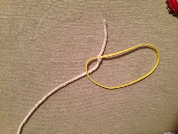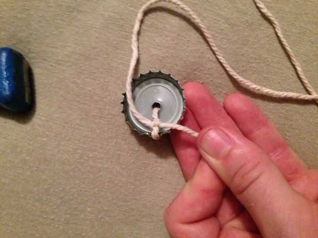 Enrosque un extremo por el agujero de la tapa y un apretado nudo doble.