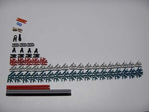 esta pequeña pistola K'nex es muy simple y utiliza solo 12 piezas (no incluye munición o una vista). No utiliza una banda elástica o bien.Paso 1: partes Arma:4 barras azul2 barras amarillas1 barra blanco2 conectores verdes1 conector amarillo3 conecto