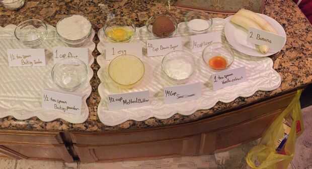 1 huevo, 1/2 taza de azúcar morena, 1/4 taza de azúcar, 1/2 taza derretida mantequilla, 1/4 taza de crema agria, extracto de vainilla de cuchara de té de 1, 2 plátanos, 1 taza de harina, té de 1/2 cuchara de levadura, té de 1/2 cuchara de bicarbonato y una pizca de sal.