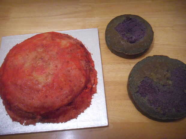Utilicé colores esponjas porque este fue un pastel de cumpleaños, y (púrpura de esponja libre de gluten) lo codificados por colores debido a los requisitos dietéticos.