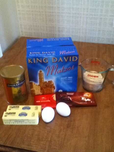 mi mamá y su mamá han hecho este pastel casi todos los años por Pascua y para ser honesto su parte de la razón me gusta tanto de la Pascua. Ingredientes: 2 huevos 3/4 tazas de azúcar 1 cda coco en polvo 50g chocolate con leche 50g agridulces 14 Tbs chocolate mantequilla (200g) 1/2 taza de puerto 5 mazos chispitas (opcional pero divertido) otras cosas que usted necesitará: Spray botella espátula suave A matzo tamaño plato (aproximadamente 2 pulgadas de profundidad) bote Metal mezcla tazón cuchara de madera