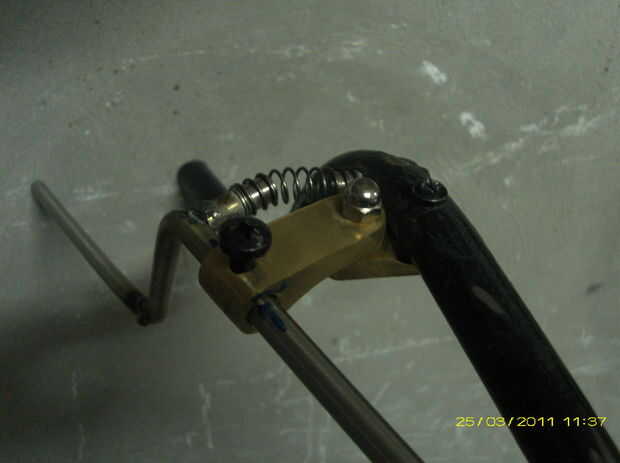 Para hacer el freno utilicé el sobrante de los dibujos de forja, calibrado inox de 8 mm (para la maneta), algo de bronce, un muelle y diversa tornillería.