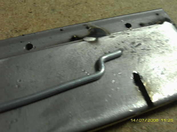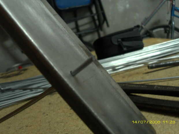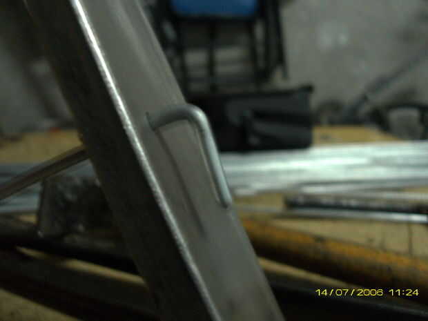 Para los radios utilicé alambre acerado de 3 mm. Para calcular el tamaño, he utilizado el teorema de Pitágoras. Una vez calculada esta medida añadir a cada rayo 4 cms más de largo para poder mecanizarlos. La primera fase consistió en doblar 1,5 cms a 90 º y más tarde de vuelta a girar para formar una "Z". En la segunda fase aplicar el final real habló medida y golpeando ligeramente el rayo a M3. Tuve que hacer los 72 rayos dos veces por el primer error de cálculo. Por eso es mejor un poco más (siempre es el momento de cortar). Los tornillos de los radios ((pezones) he usado los mismos que la bicicleta normal sólo que tuve que pierce a 2,5 mm y después golpeando con M3.