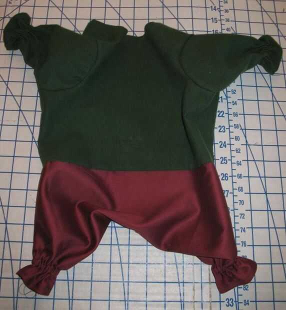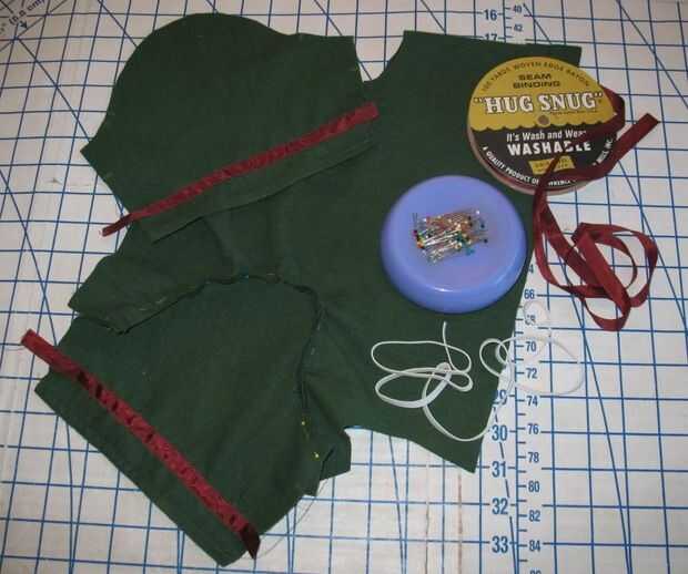 Haciendo referencia a un par de imágenes de la película, decidí reunir las aberturas para las piernas con elástico. He hecho una cubierta para el elástico con un algún enlace de costura que tenía en mano.