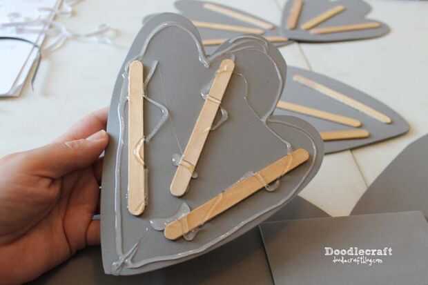 Tenga esto en cuenta y pegar 3 palillos en la parte posterior de cada ala.