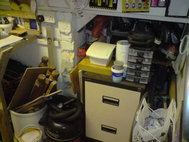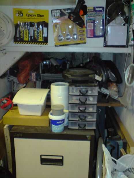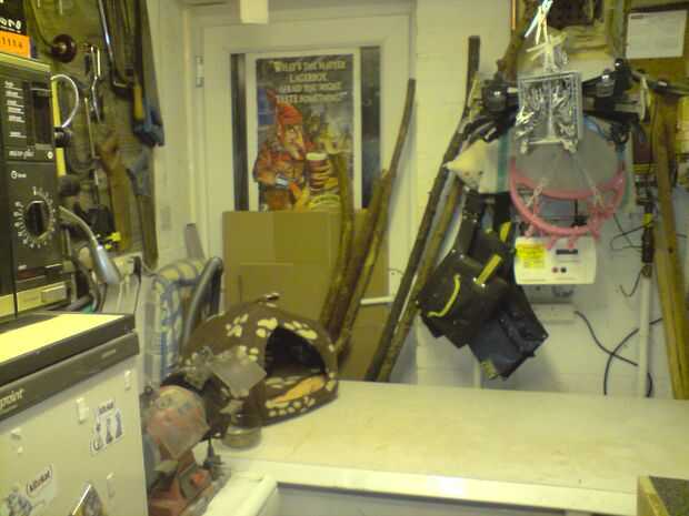 Junto con mis herramientas también contiene una nevera despensa, microondas, secadora y congelador y es el lugar para dormir favorito para nuestros dos gatos Pixie & ' ible.
