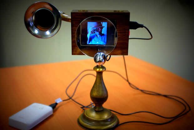 Avant tout fonctionne... Mais j ' y parvenu de suis enfin! Le voici après intégration dans un boitier improbable qui lui donne l'allure je cherchai c ' est à dire un objet "Punky del vapor" comme je les aime! Avec une batterie, je n ' ai pas de une souris encore modifiée, lupa de une, un cucurucho acoustique!